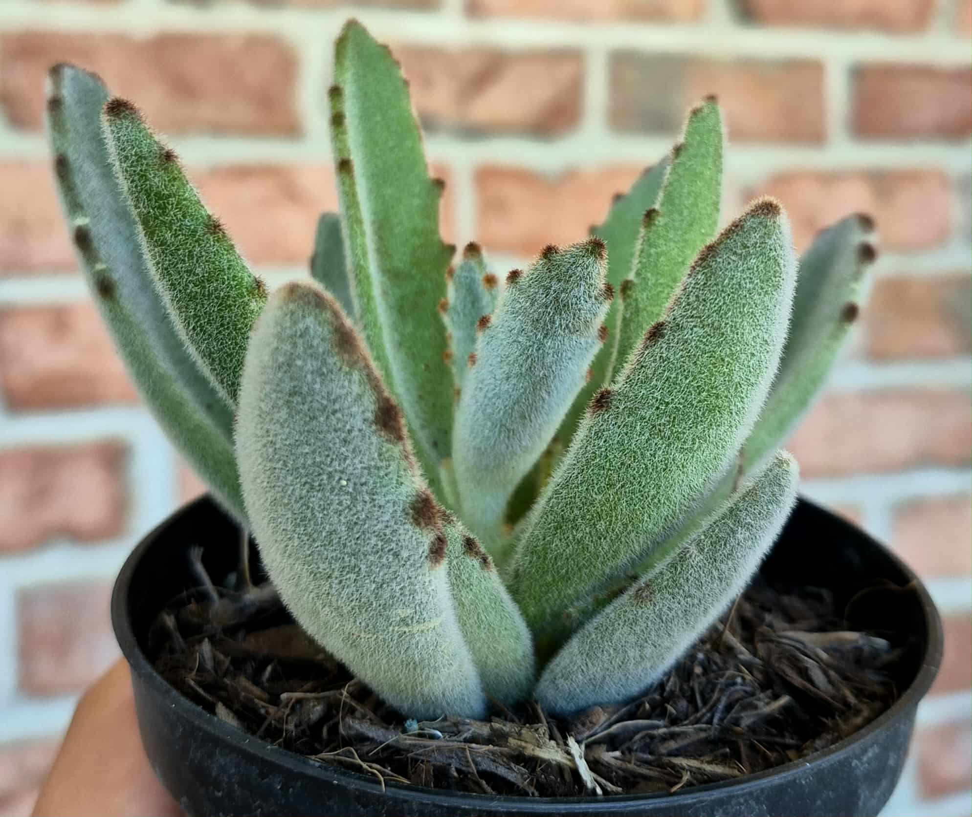 Panda plants are adorable, just like their bear namesakes! The fuzzy leaves are almost soft to the touch and brown spots line the outside of the leaves, which take on a silvery green appearance. Just like most other succulents as far as care goes, place your copper spoons in an area with bright light and water only when the soil is completely dry.