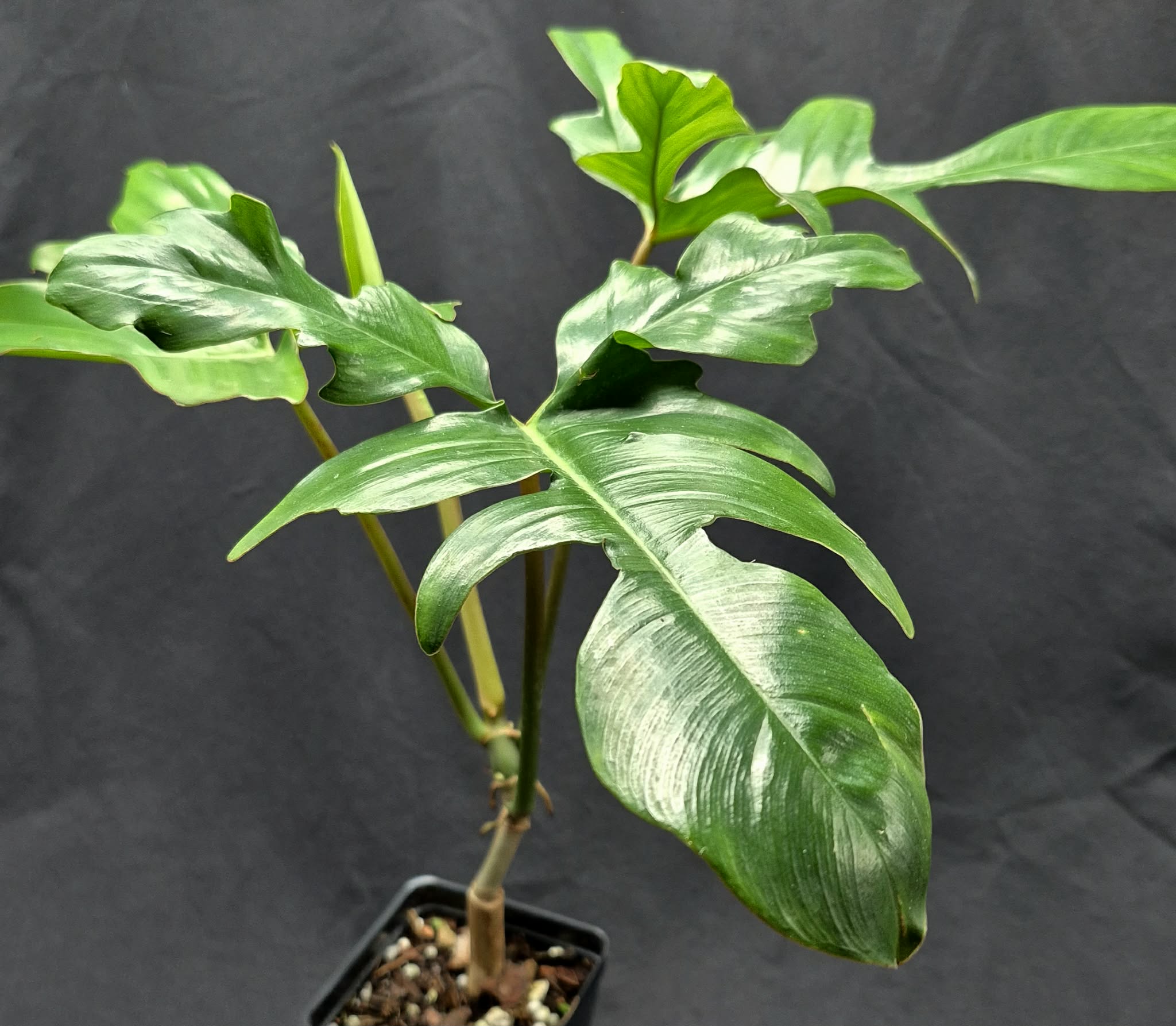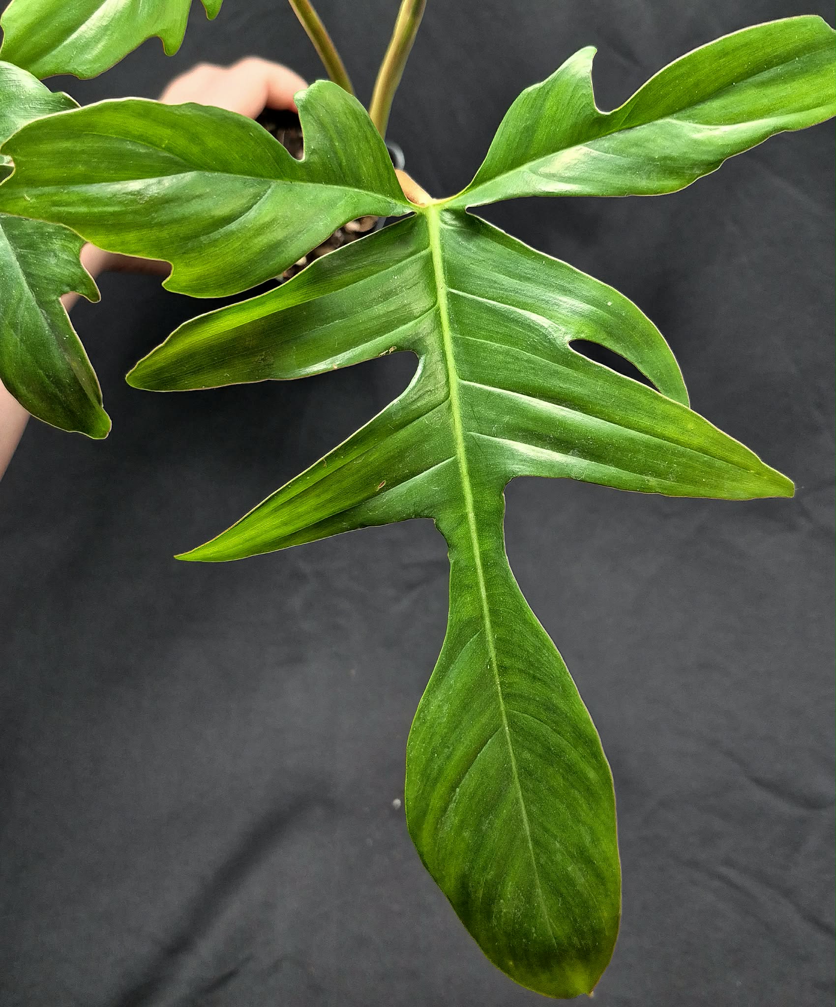Philodendron Glad Hands has some of the most unique leaf shapes in the philodendron genus! Each leaf can vary with how many and how dramatic each lobe is, which only becomes more exaggerated as the plant matures. Support is suggested to encourage the best growth of the plant. Moss poles, sturdy posts, and trellises are all great choices.