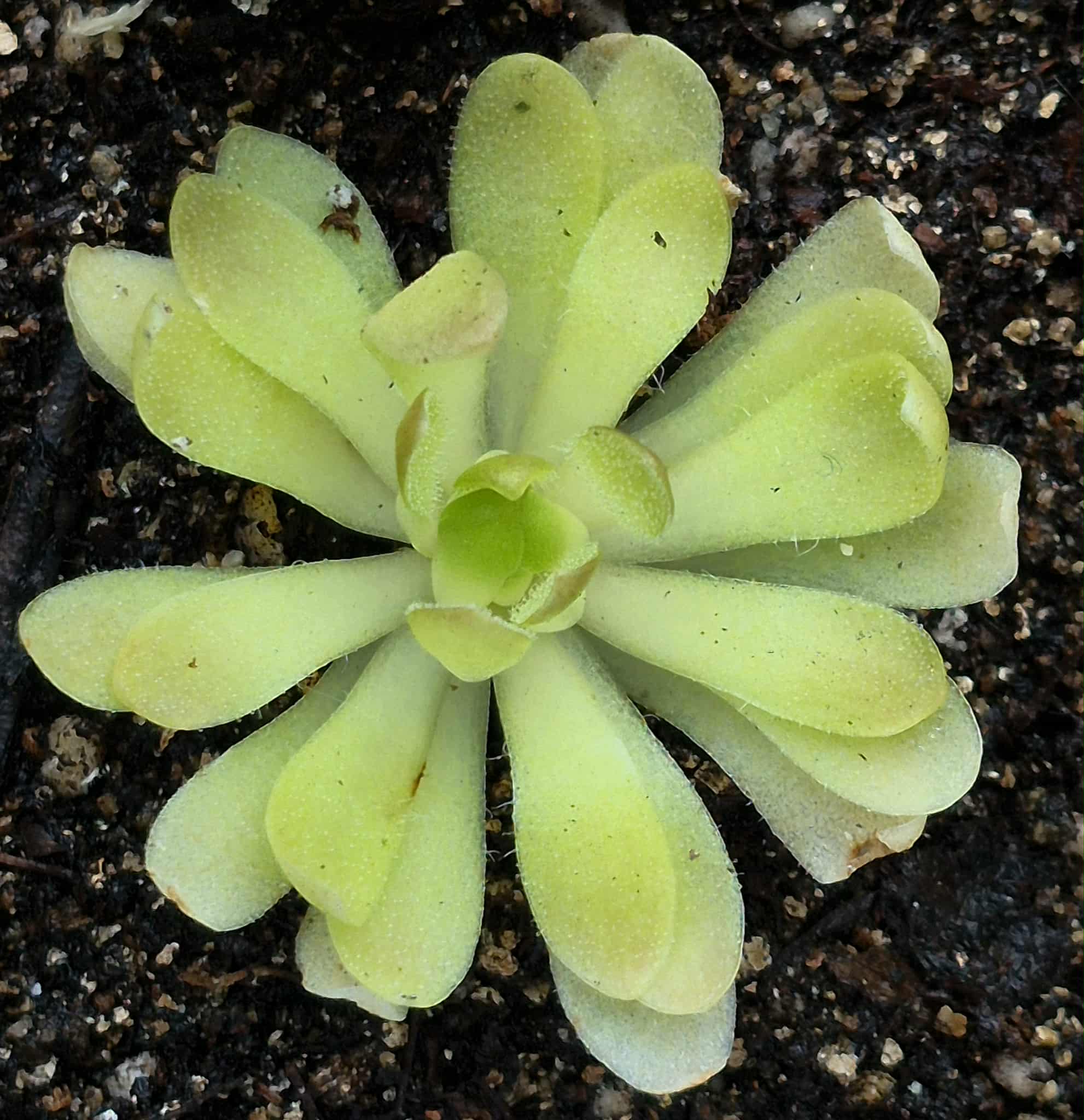 Butterworts (Pinguicula spp.) are carnivorous! They secrete a sticky mucilage from their leaves that traps small insects like fungus gnats and mosquitoes. This mucilage can give the leaves an oily appearance and feel, shedding some light on the genus name which translates to "little oily one." The flowers on Pinguicula spp. are orchid-like and can last for weeks! These plants are very easy to care for and are beginner friendly. For detailed care information, click here. A care sheet will also be sent with each purchase.
